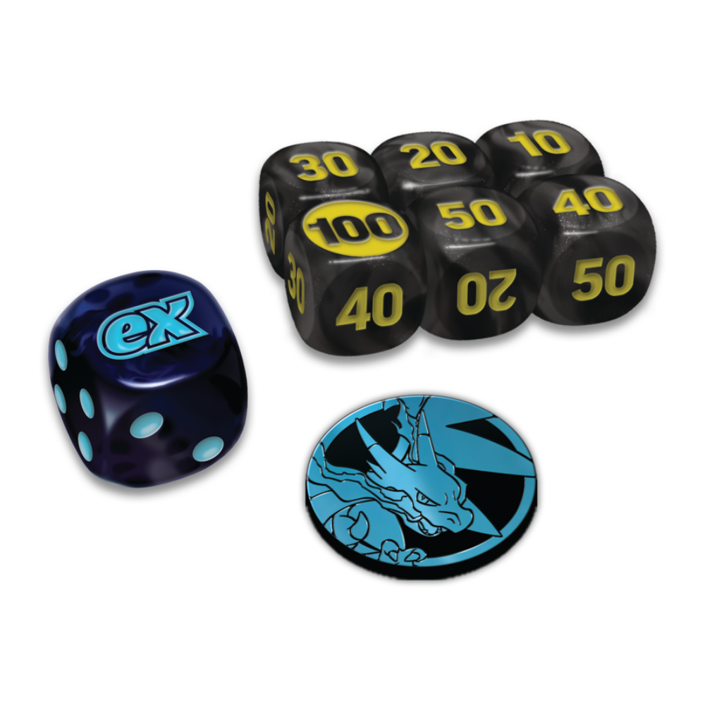 - Recebes também 40 cartas de Energia do Pokémon TCG, 6 dados de damage-counter, 65 card sleeves e 1 dado para lançamento de moeda, legal para torneios.